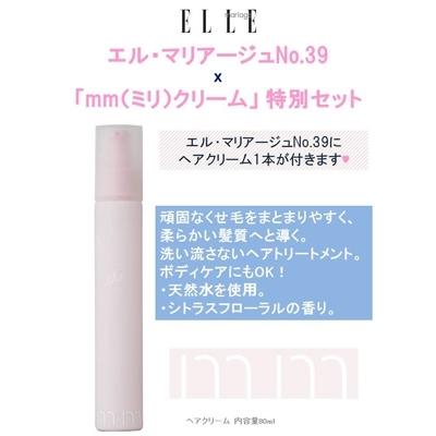 エル・マリアージュ No.39 に「mm」 のヘアクリーム1本が付く特別セット。