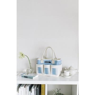 北欧のテイストが存分に活かされたトートバッグは、内側と外側に大小様々なポケットが8個あり、キッチングッズや家の小物を収納しながら美しく整理整頓もできる優れもの。