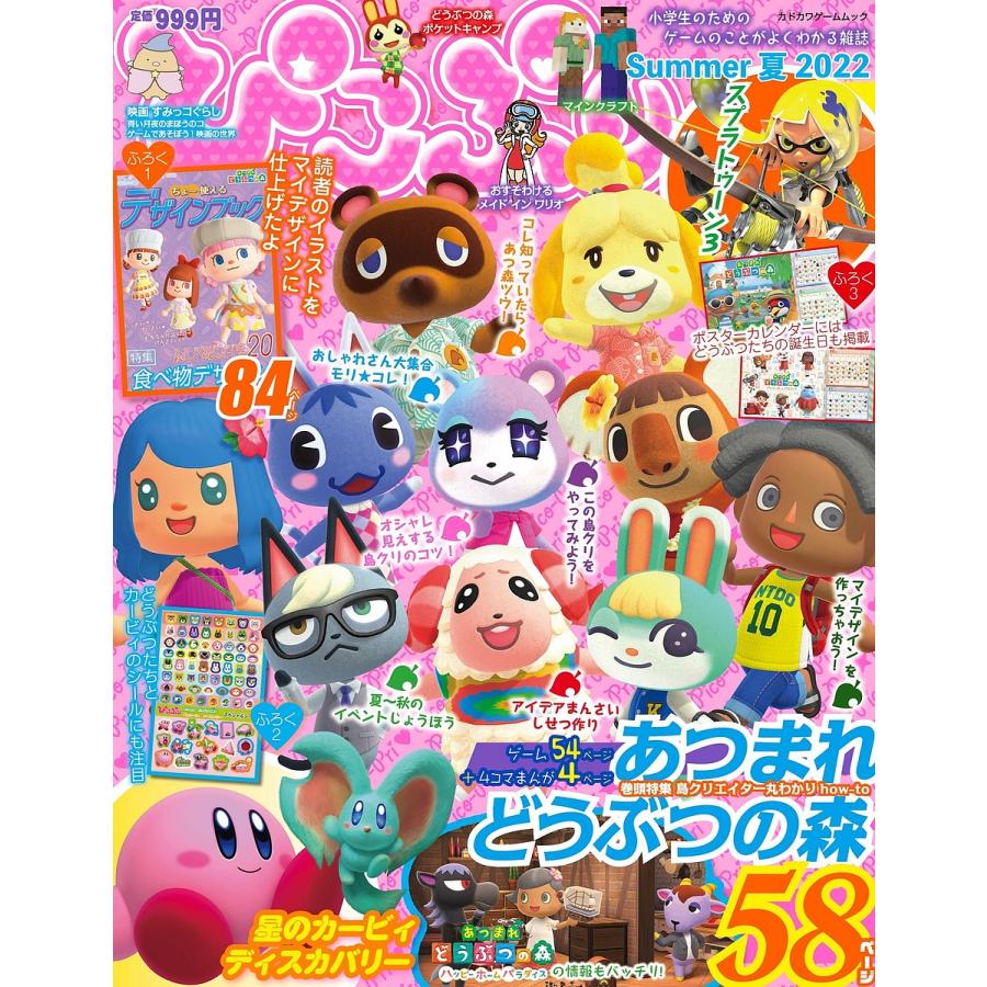 ぴこぷり Summer 夏 2022 【付録】 あつまれ どうぶつの森 ちょー使えるデザインブック、あつまれ どうぶつの森&星のカービィ ディスカバリー スペシャルシール 79枚 など