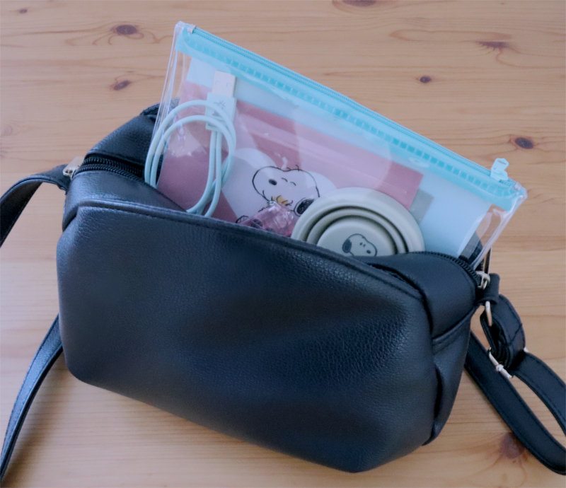 普段は災害用の持ち歩きポーチに。旅行の時には中身をプラスして使うと便利そうです。