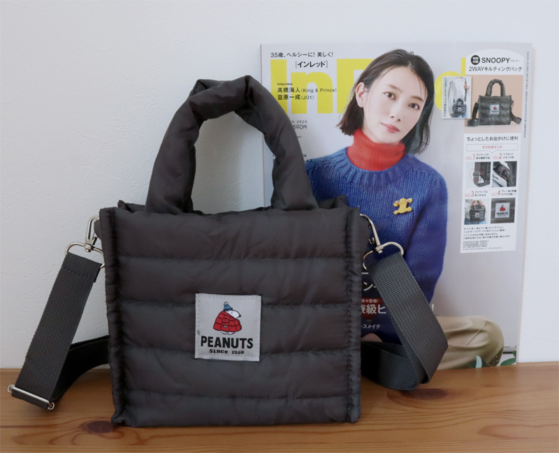 InRed 11月号の付録はスヌーピーの2WAYキルティングバッグ。
