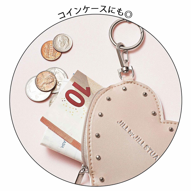 ハート形ポーチチャームは、スタッズで今っぽさ増し増しにアップデート。
