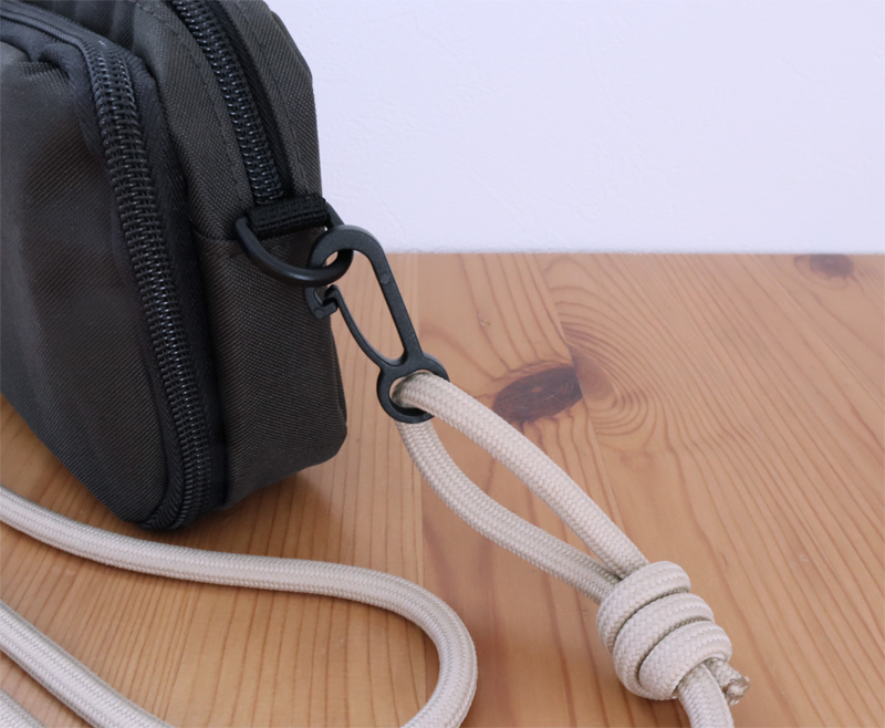 ショルダーストラップを外せばポーチになるつくり。ストラップもアウトドアテイストで素敵です。