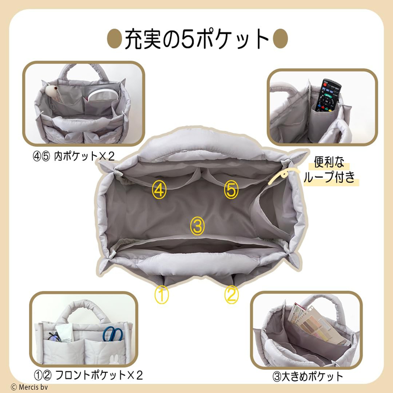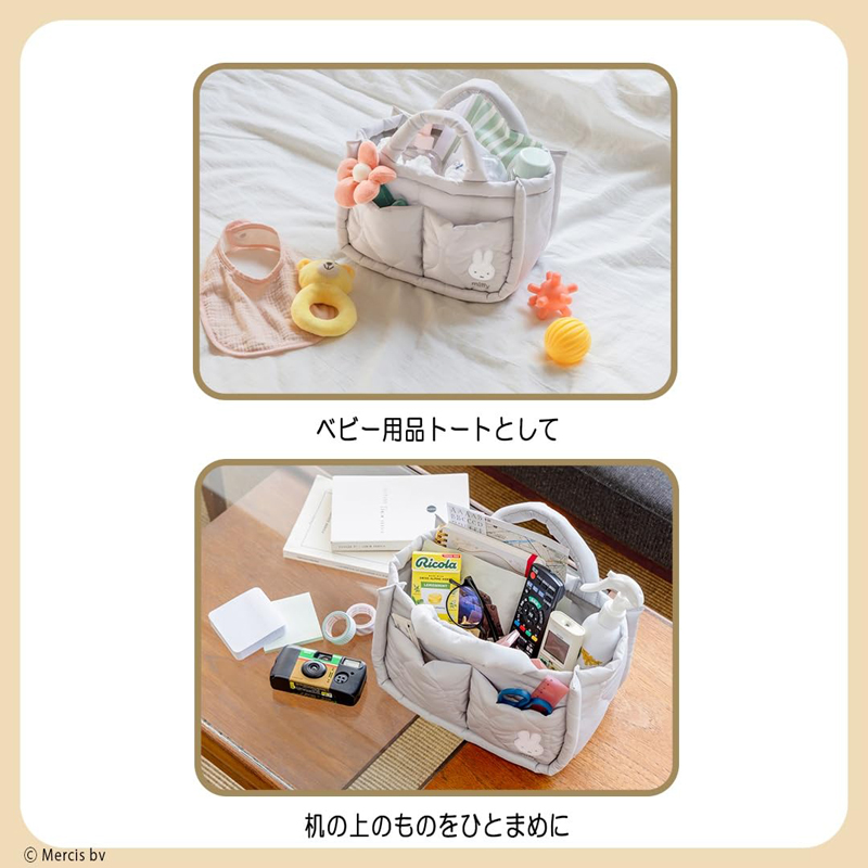 \5つのポケットとループ付きで整理上手に/ miffy ふかふかキルティング 収納トートバッグBOOK