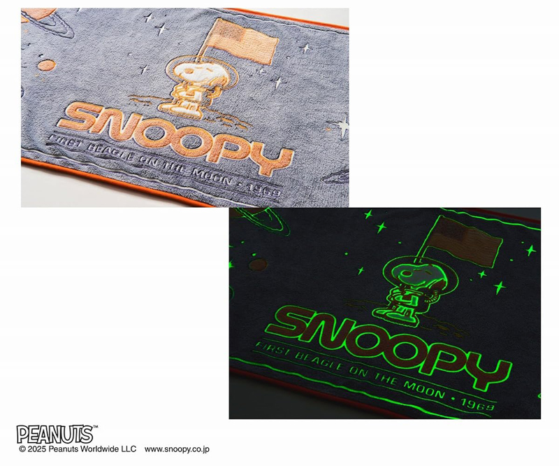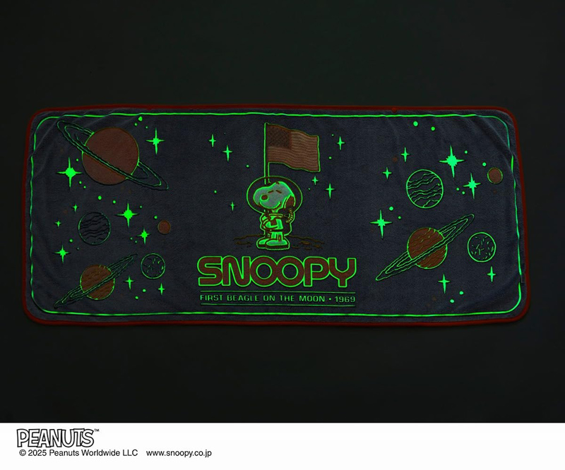 宇宙をモチーフにしたデザインがマッチ。惑星たちと月に立ったスヌーピーが浮かび上がります。