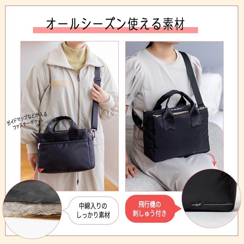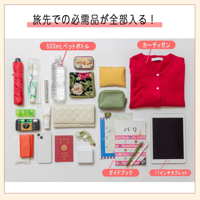 荷物を分けられる3層構造、サコッシュにもなるポーチなどの便利ポイントはそのままに、旅がもっと楽しくなる!オールシーズン使える3層バッグです。