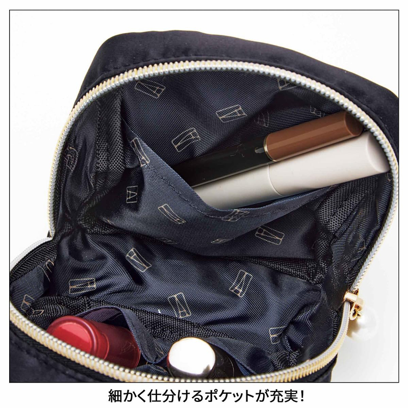 コンパクトながらも収納力に自信ありなポーチと、こんなのほしかった!の声を実現させた持ち手つきミラーの豪華セット。