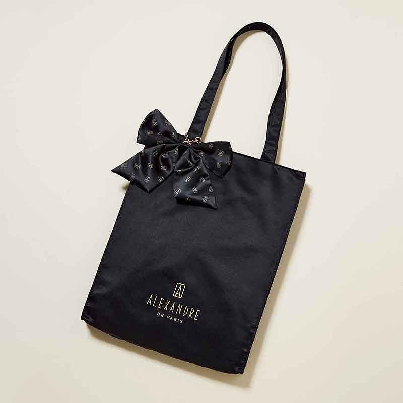 増刊号の付録は「アレクサンドル ドゥ パリ」とコラボした、Aマークのロゴがキャッチーなビッグリボンチャームと、レディ見えを叶えてくれるサテン調のトートバッグ。