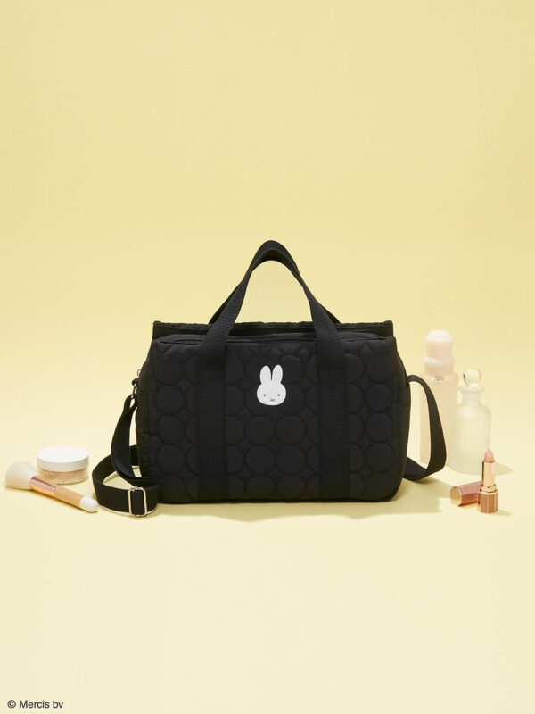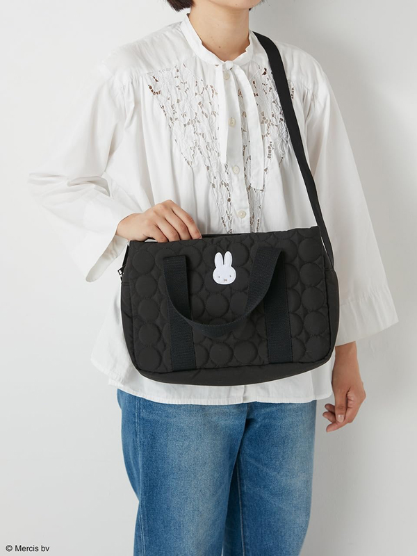 おしゃれな丸形キルティング生地に、もこもこミッフィーがワンポイントでデザインされた、大人かわいい2WAYショルダーバッグが登場。