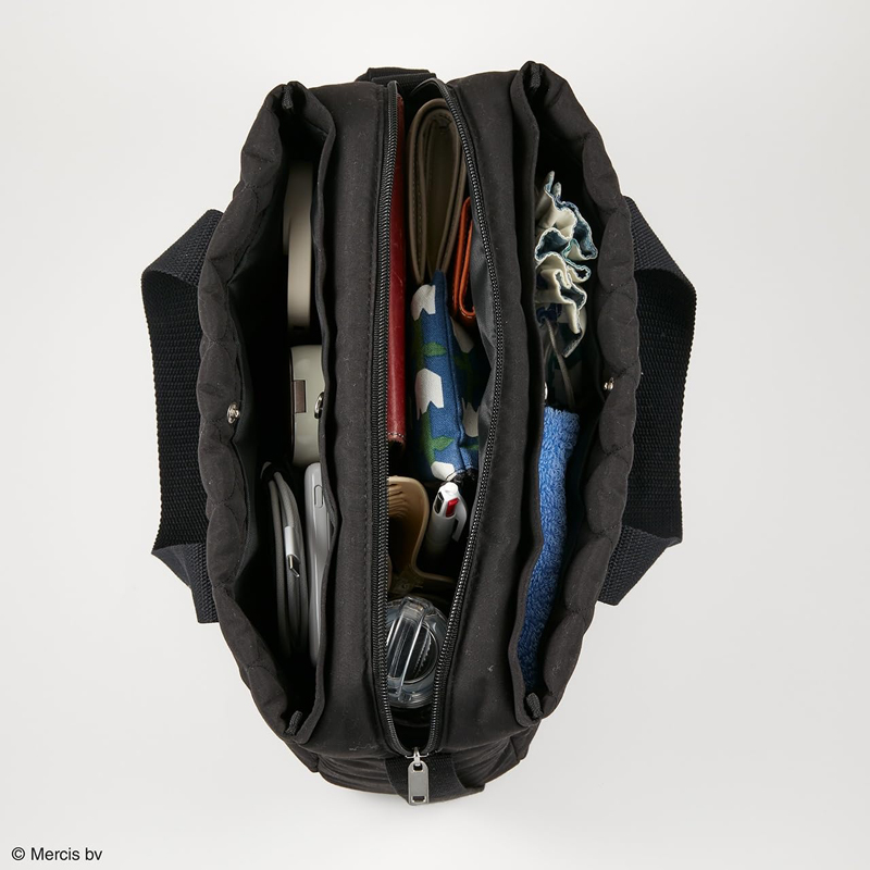 口が大きく開き、収納部は3層に分かれているから整理しやすく、荷物の出し入れもスムーズ。