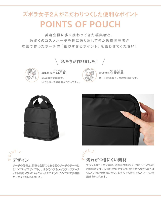 美容企画に多く携わってきたズボラな編集者と、数多くのコスメ収納アイテムを世に送り出してきた製造担当者が本気で作ったポーチの“細かすぎるポイント”を語らせてください!