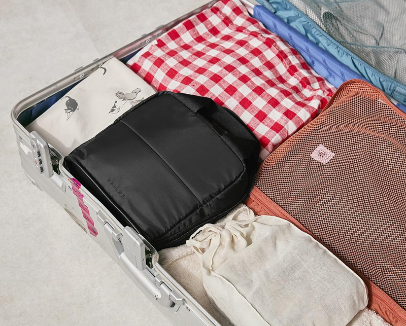軽量&かさばりにくい素材で、旅行の際にも荷物の邪魔をしにくく、そのまま持ち運べるのもポイント。