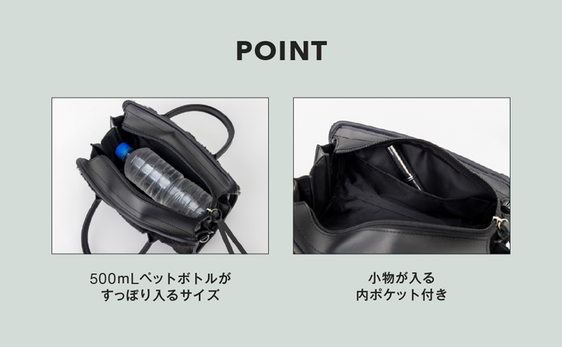 ◎500mLペットボトルが横にすっぽり入るサイズ感
