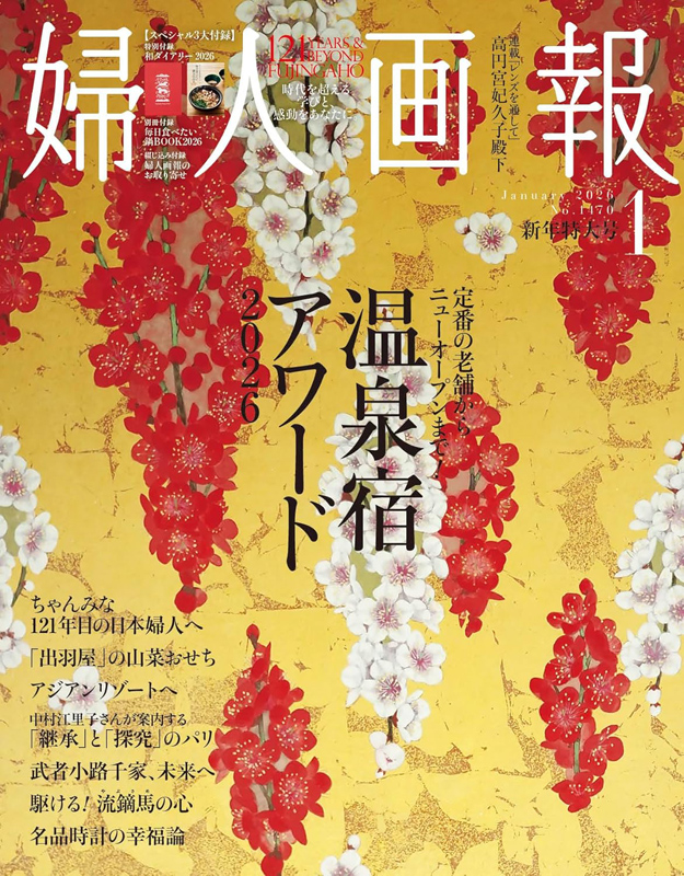婦人画報 2026年 1月号の特集は、温泉宿アワード 2026、ちゃんみな 121年目の日本婦人へ など。