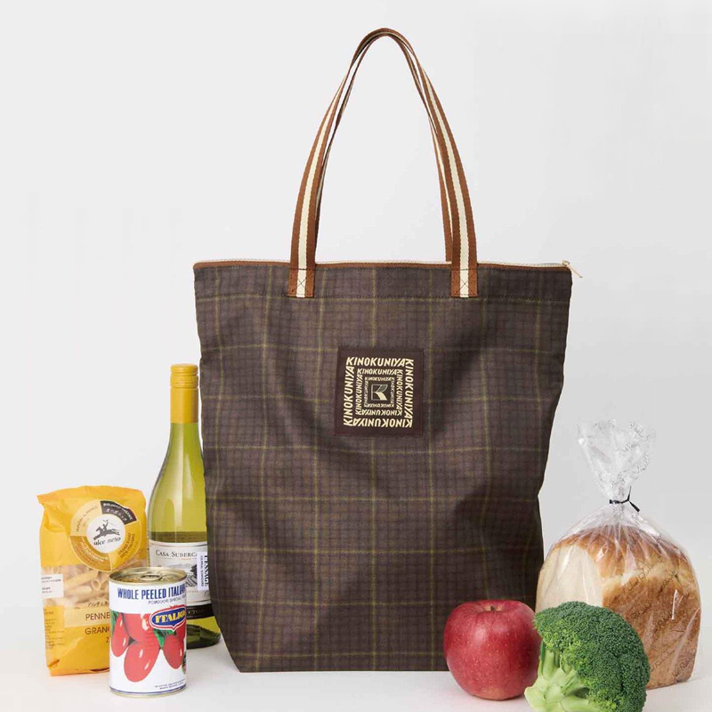 保冷・保温機能付き、オリジナルチェック柄のお買い物バッグです。