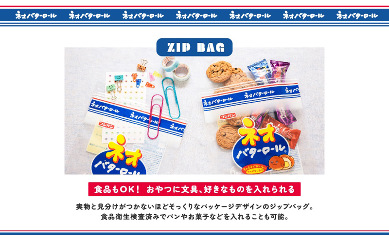 さらに、ネオバターロールの袋と同じサイズのジップバッグ2枚付き。