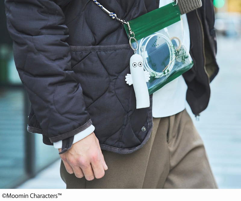 ショルダーストラップにニョロニョロマスコットキーホルダーをくっつけたら、スタイルが完成します。