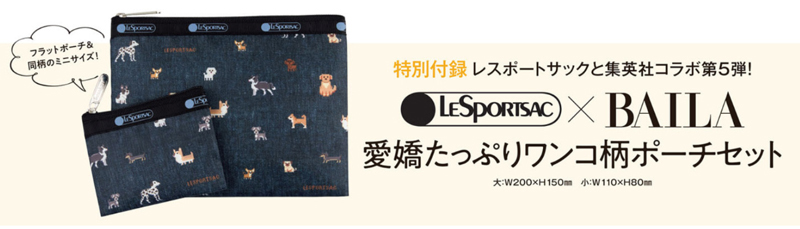 付録はレスポートサックと集英社コラボ第5弾!愛嬌たっぷりワンコ柄ポーチセット。