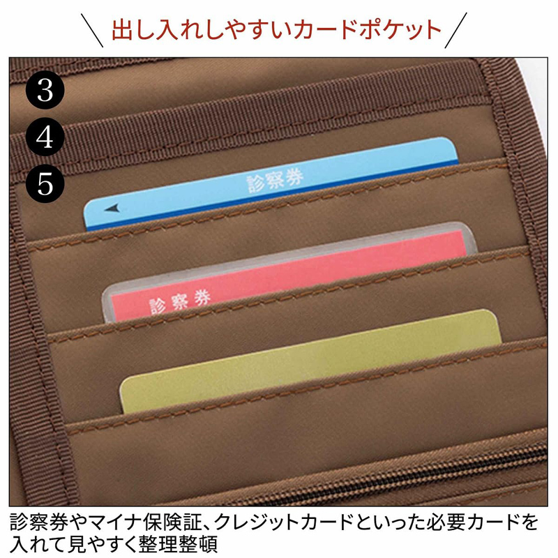 お薬手帳やパスポート、通帳、診察券、カード類に領収書、小銭まで収納でき、いざというときに探す手間なく管理できる7つのポケットのケースです。
