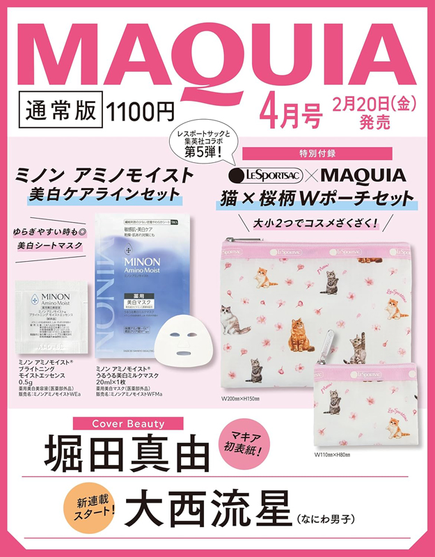 MAQUI 4月号に付くのは 猫×桜柄キュートポーチセット。