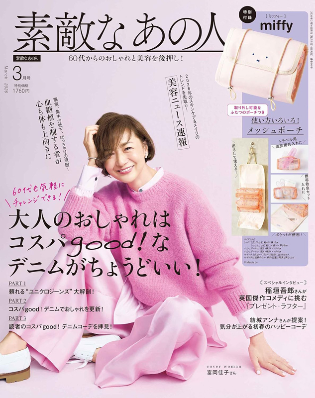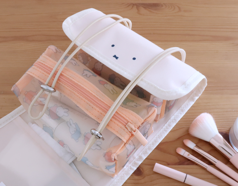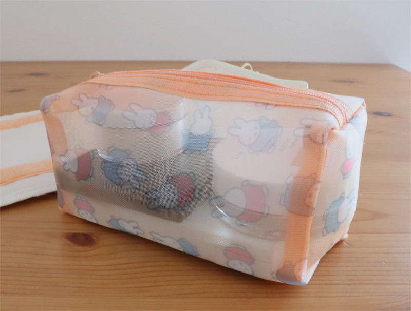 素敵なあの人 3月号の付録、ミッフィー トラベルメッシュポーチ。フェイスデザインがポイントのシンプルな外観です。