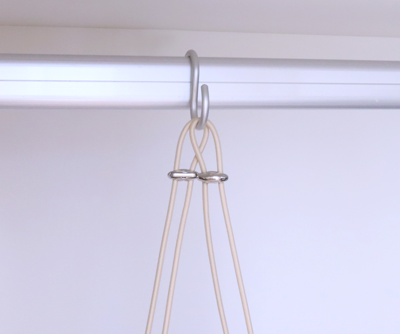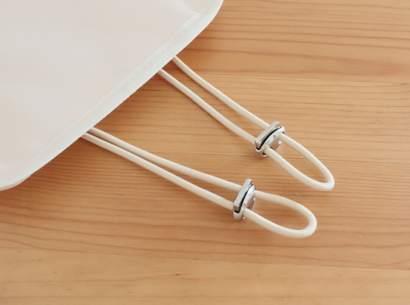 ゴムひもの長さ調節も可能。この部分をフックに引っ掛けて、