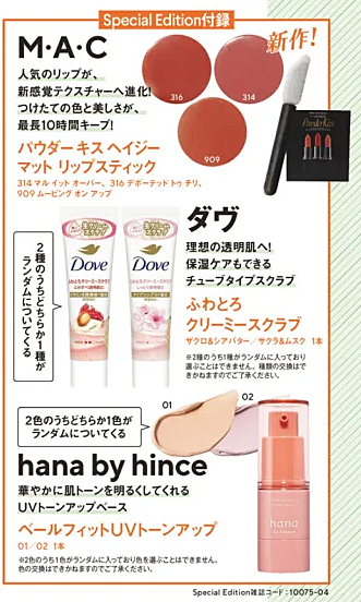 雑誌付録:M・A・C、ダヴ、hana by hince