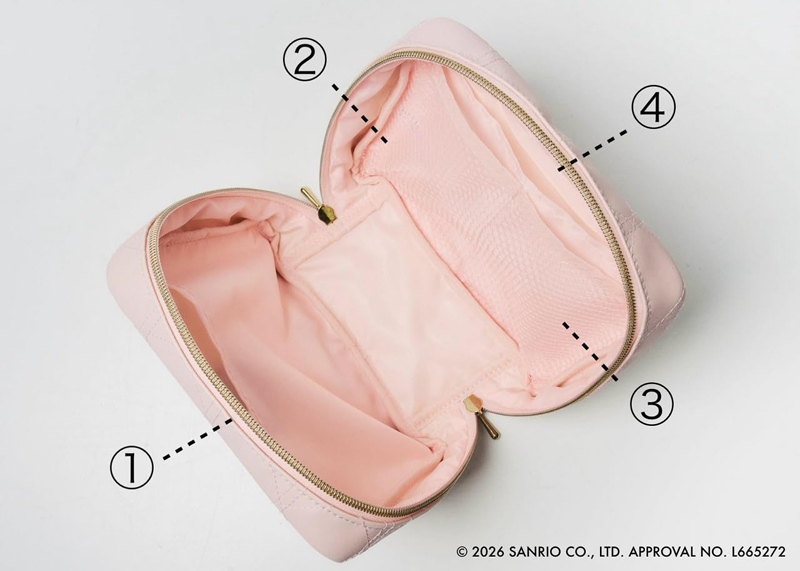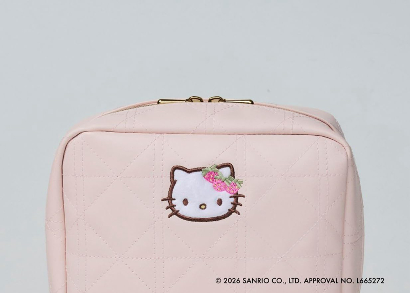 高級感のあるキルティング素材に、もこもこ素材&繊細な刺繍で仕上げたキティデザイン。