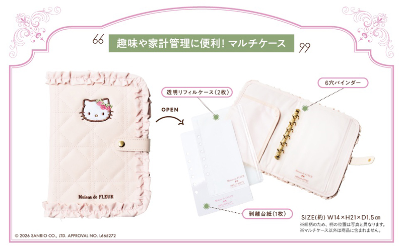 概要:Maison de FLEUR×HELLO KITTY いちごマルチケースBOOK PINK