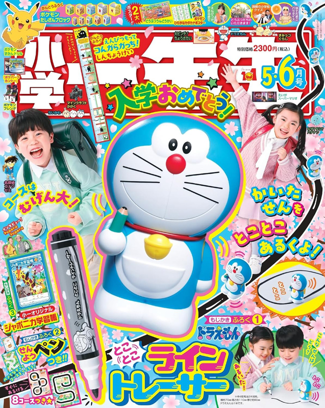 小学一年生 2026年 5・6月合併号 【付録】 ドラえもん とことこライントレーサー、小一オリジナル ジャポニカ学習帳「こくご」