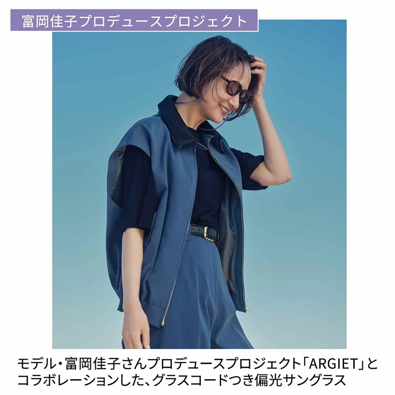 『素敵なあの人』5月号の付録は、モデル・富岡佳子さんプロデュースプロジェクト「ARGIET」とコラボレーションした、グラスコード付き偏光サングラス。