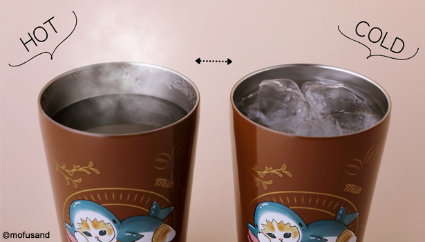 タンブラーのデザインは、mofusandのかわいいにゃんこたちのイラストに、それぞれコーヒーやグリーンティー、ココア/ホットチョコ、中華スープといった飲み物がコンセプとなったモチーフになっています。