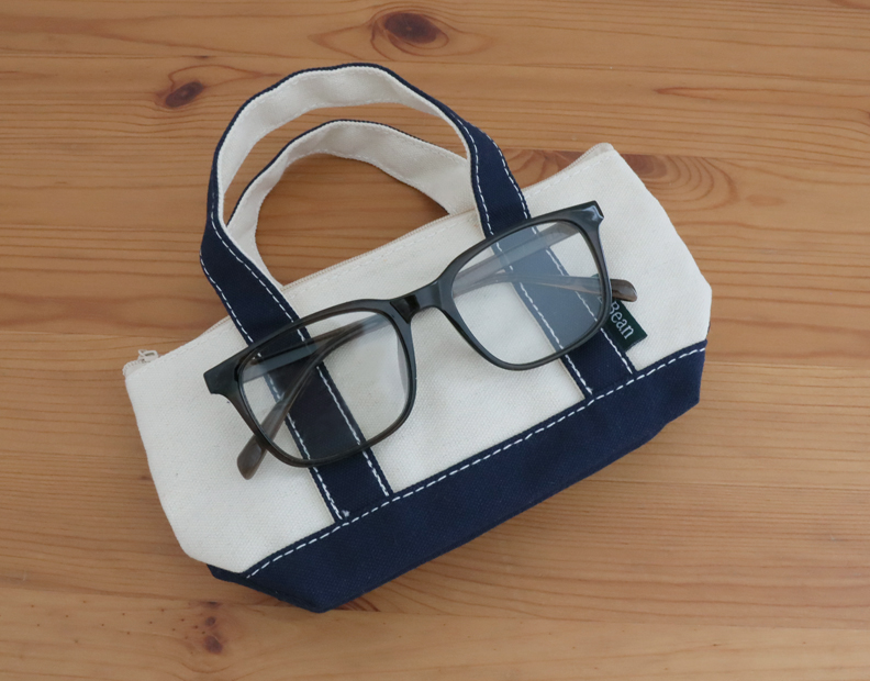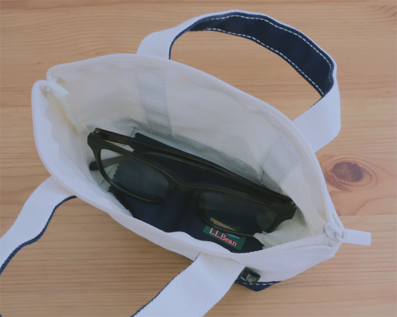 サングラスとクロスを入れるとこんな感じで深さに余裕があります。トートバッグのような素材なので、サングラスの保護用というよりは持ち運び用かなと思います。