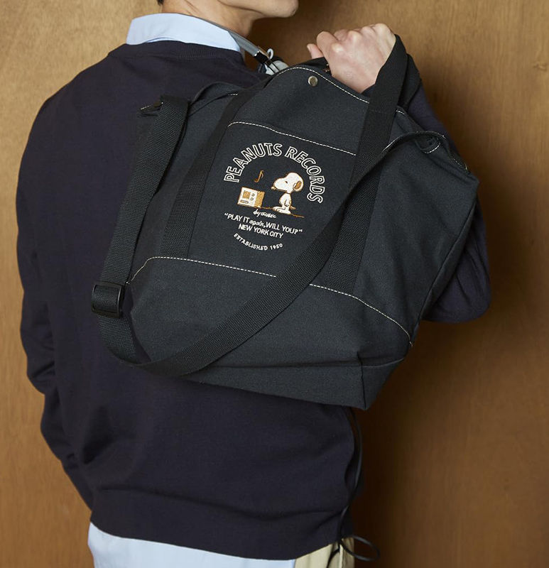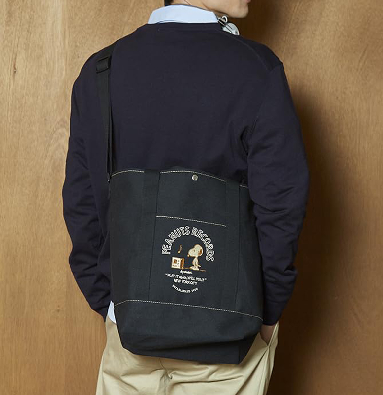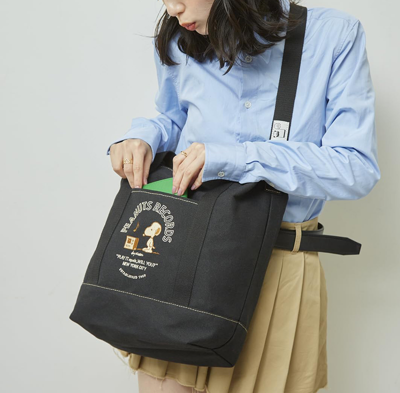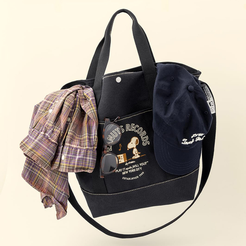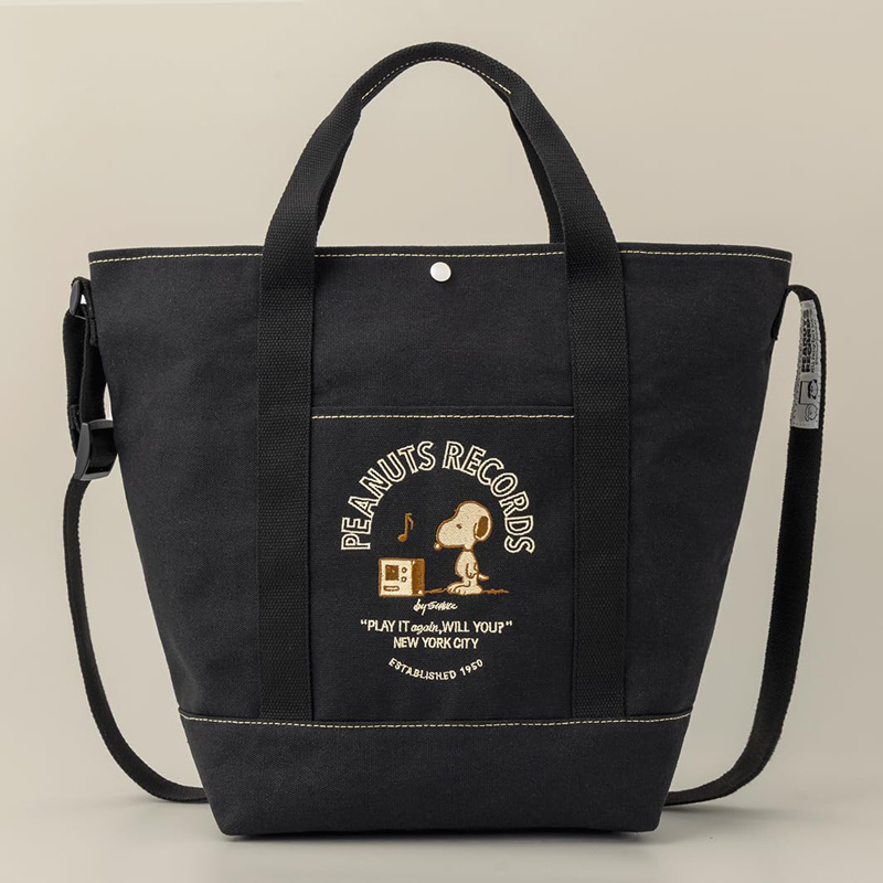 フロントに施したスヌーピーの刺しゅうが、クラシックな雰囲気に上品さを添える舟形トートバッグ。