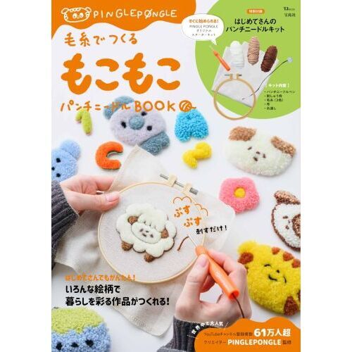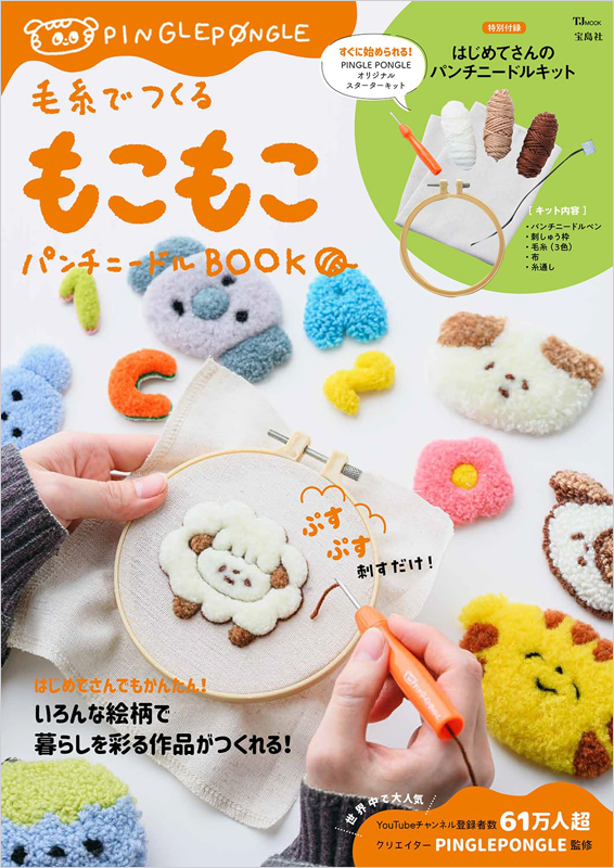 YouTubeチャンネル登録者数60万人超のパンチニードルクリエイター、PINGLE PONGLE監修のパンチニードルキットBOOK。