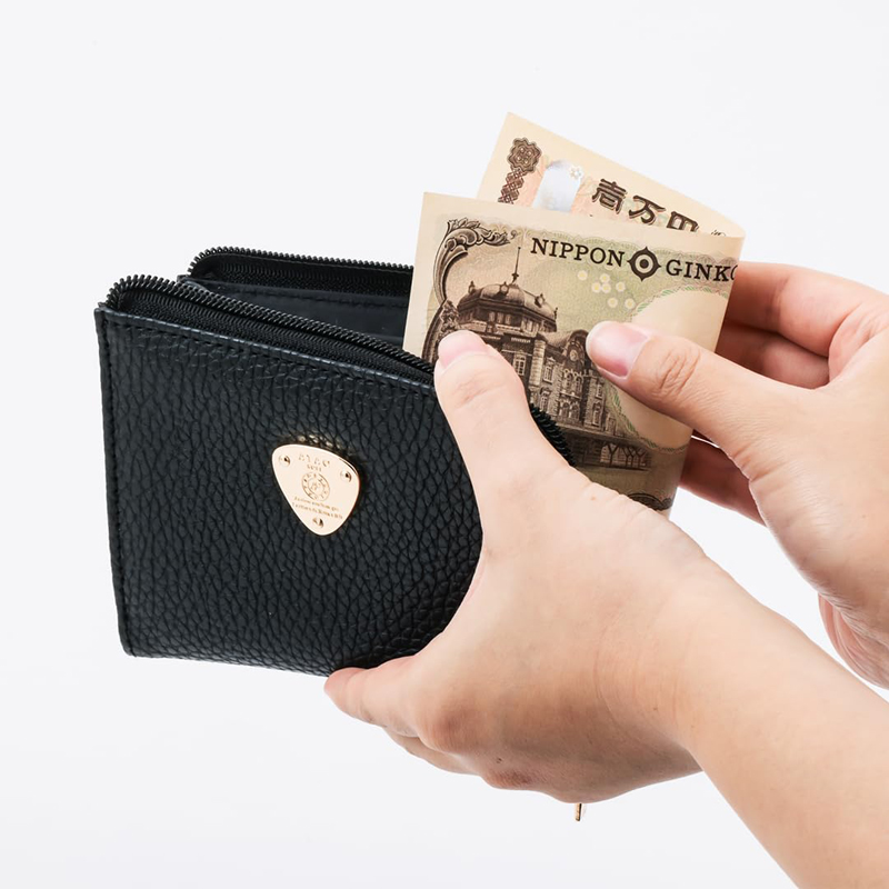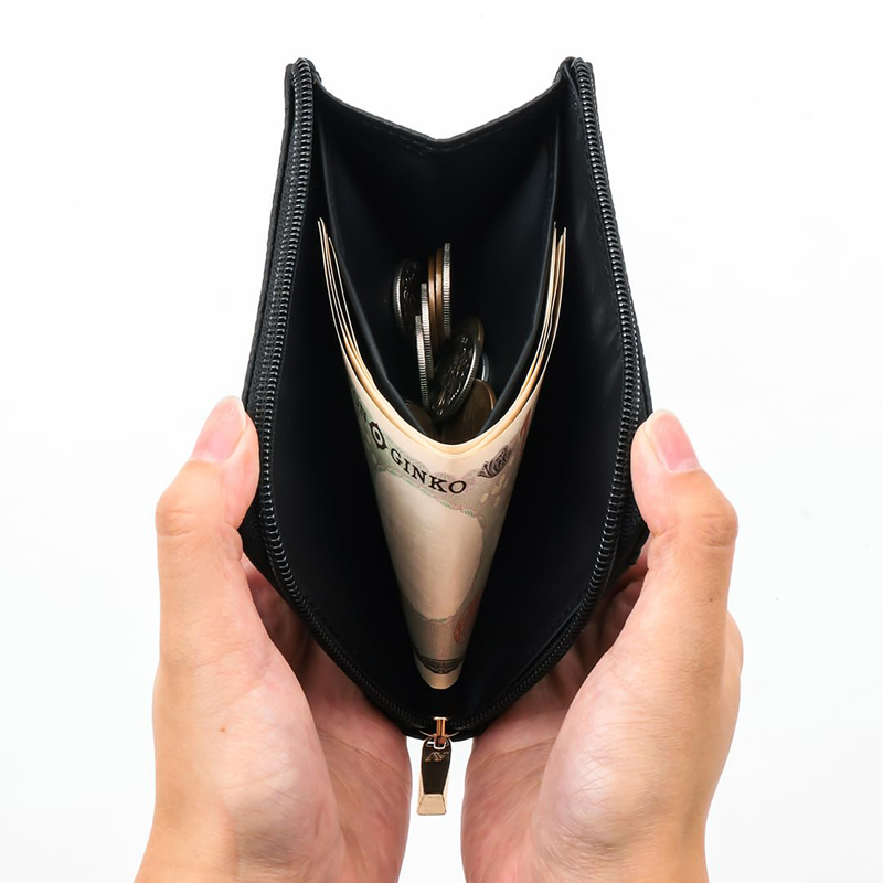 薄くて、手のひらサイズなのに、カードやお札、小銭をたっぷり収納できるという画期的な仕様!