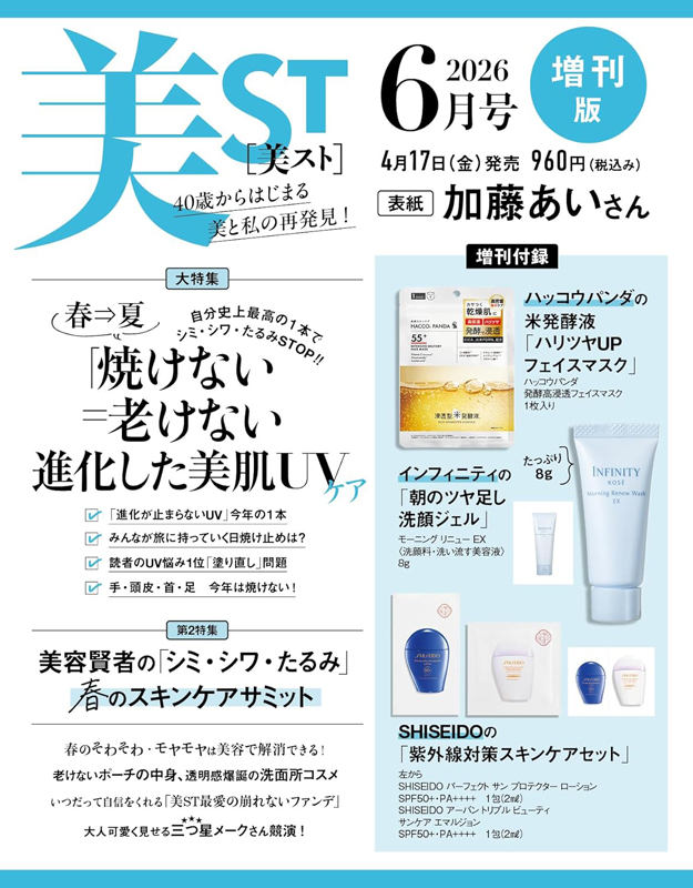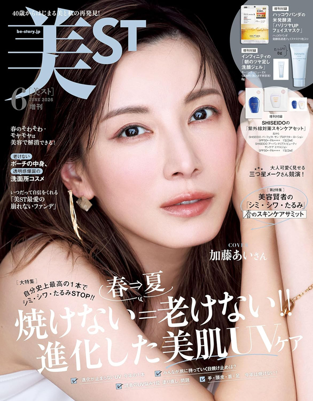 美ST 2026年 6月号の特集は 自分史上最高の1本でシミ・シワ・たるみSTOP‼ 春⇒夏 焼けない=老けない‼進化した美肌UVケア など。