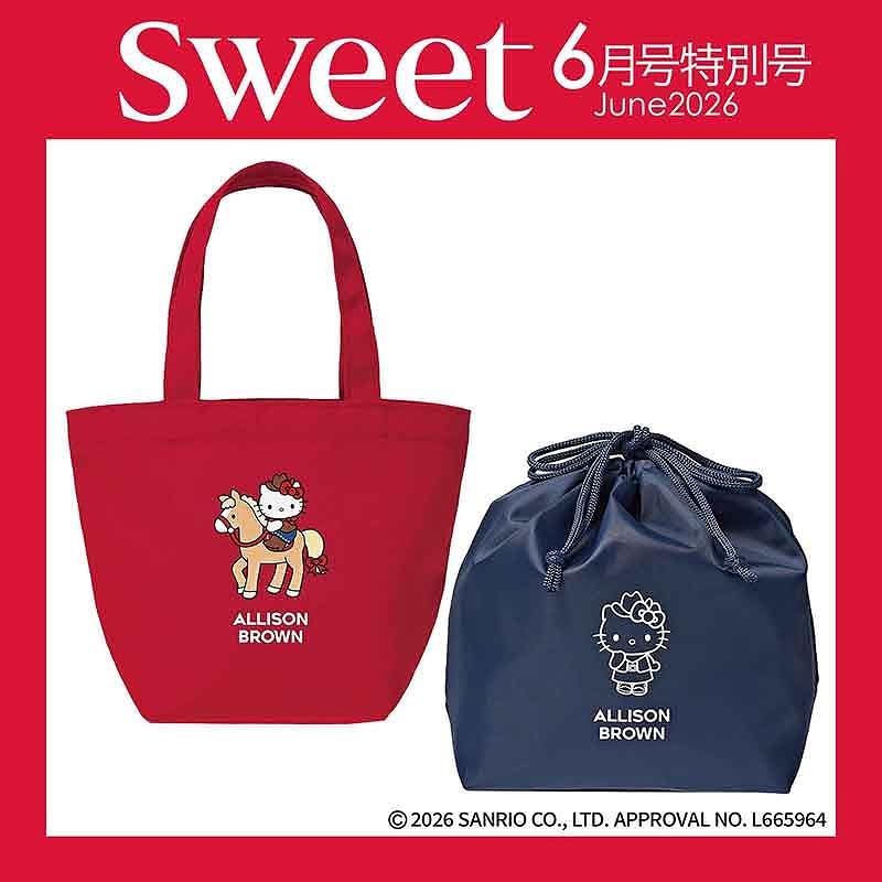 sweet 6月号 特別号「オトナスウィート」の付録は、ハローキティ×アリソンブラウンのセットでも単品でも可愛いトート&巾着。