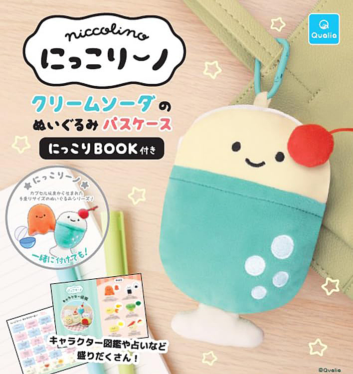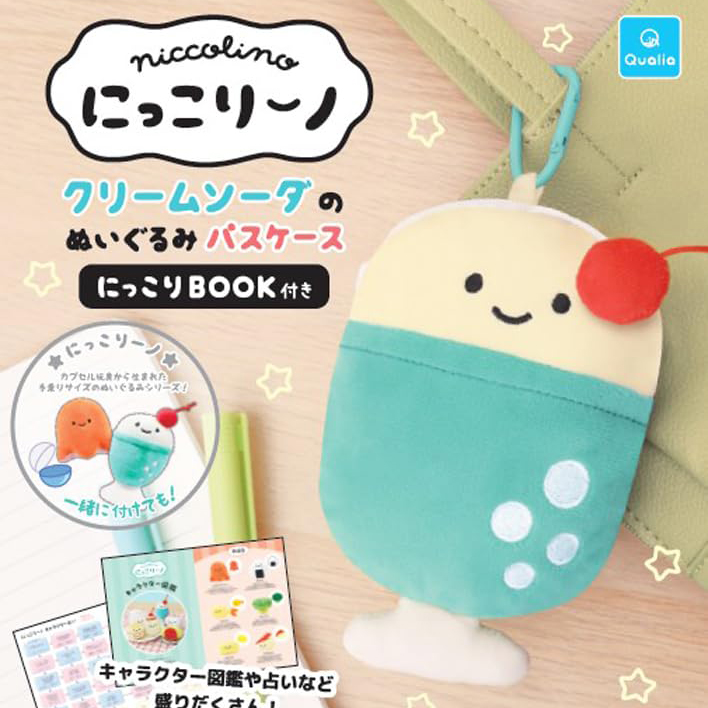 概要:にっこりーノ クリームソーダのぬいぐるみパスケース にっこりBOOK付き