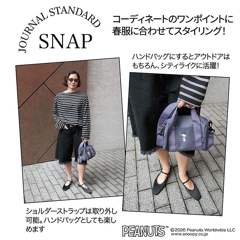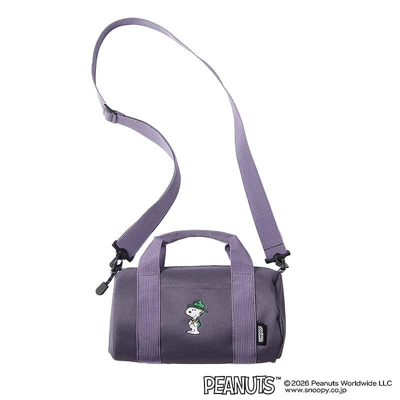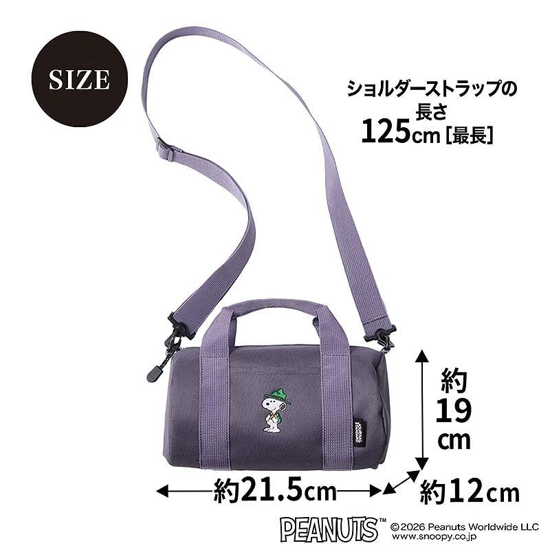 登山スタイルのスヌーピーが可愛い、刺繍入りおでかけミニボストン。