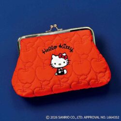 \『リンネル』3月号増刊の付録は、リンゴ形のキルティング生地に、ハローキティとロゴを刺しゅうであしらった豪華ながま口ポーチ/はっきりとした色味でバッグの中に入れていても目立つこと間違いなし。意外に大容量なので持ち歩きのコスメやガジェット入れにも◎デイリーに使ってほしいアイテムです。