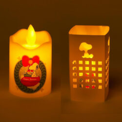 「おしゃれな専用スリーブ付き! スヌーピーデザインのゆらゆらキャンドルライト」スヌーピーデザインのゆらゆらキャンドルライト。おしゃれな専用スリーブがセットです!キャンドルモチーフの炎がゆらゆらと揺れる不思議なLEDライト。あたたかな灯りと、かわいいスヌーピーのイラストが、寒い季節にほっこりと癒やしてくれるアイテムに仕上がりました。