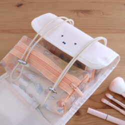 素敵なあの人 3月号の付録、ミッフィー トラベルメッシュポーチ。フェイスデザインがポイントのシンプルな外観です。サイズはこのタイプとしては小ぶりな縦12×横16cm。高さは9cmあり、横から見ると分厚い印象です。中には2個のメッシュポーチ付き。