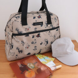 リンネル 4月号の付録はムーミンとサマンサ モスモスがコラボしたボストンバッグと メッシュポーチ。こちらはボストンを開封して広げたところ。サイドのマチ部分に少しシワがありましたが、前面・後面にはほとんどシワがなく、すぐに使えるキレイな状態でした。